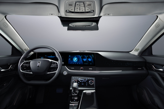 无帽檐的仪表盘以及中控台液晶显示器所构成的第一层内饰主体,完全融入到仪表板的形体中。副仪表板承担了更多的操作功能,也同样通过黑色高光面板以及形体的设计,与大尺寸液晶显示器形成了立体的呼应。全新UI设计界面,跃然于12寸仪表屏和中控大屏之上,活泼动感的界面将实用性与轻松愉悦完美融合,让用户尽享科技之美。