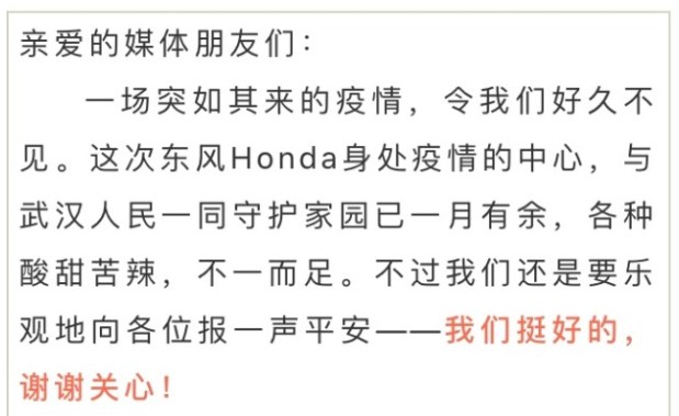 今年2月东风本田一封“感谢信”撩动了众多人的心,在互联网、4S店,东风本田为品牌消费者、经销商和社会推出的系列政策让人看到一家成熟企业的担当和责任,众多车主及消费者为这家身处疫情漩涡中心的日系品牌送去的温暖让人沉浸在时间沉淀后的喜悦——“信念·突破·远界”,这一在成立之初便设下的品牌理念,正汇集着来自全国各地的信赖及肯定。
